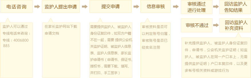 如果您已经申请家长监护服务,您可以通过输入服务号码进行进度查询,了解您所提交的服务申请新的处理进展,如:邮件是否收到,是否需要后续提交信息,帐号是否已经进行处理等。服务期间,如果您对需要提交的信息或者处理结果有疑问,或者其他任何问题,您均可以随时联系我们,我们将由专门负责的客服主管为您提供咨询解答服务,或者配合、指导您解决问题。